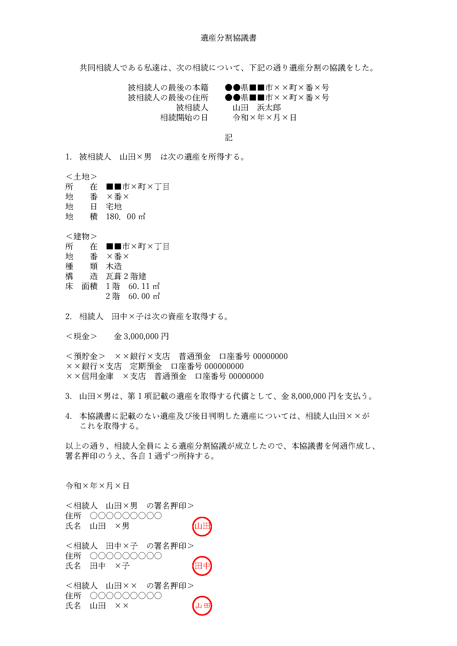 遺産分割協議書には、法的に決まった書式(雛形)などはありません。必要事項がきちんと記載されていればどのような書式でも問題ありません。